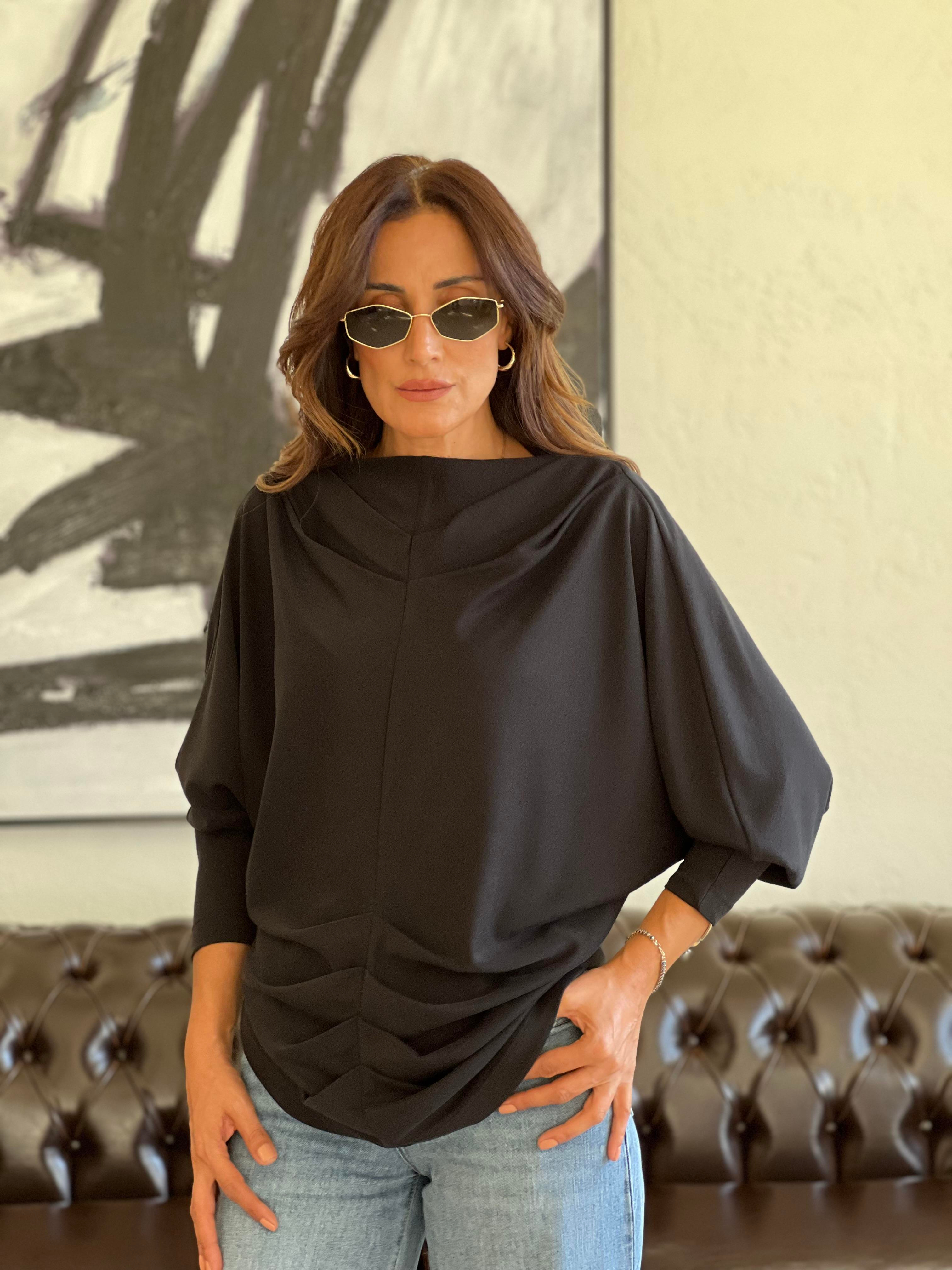 GENİŞ KESİM, YARASA KOL,BÜZGÜ DETAYLI ÖRME BLUZ