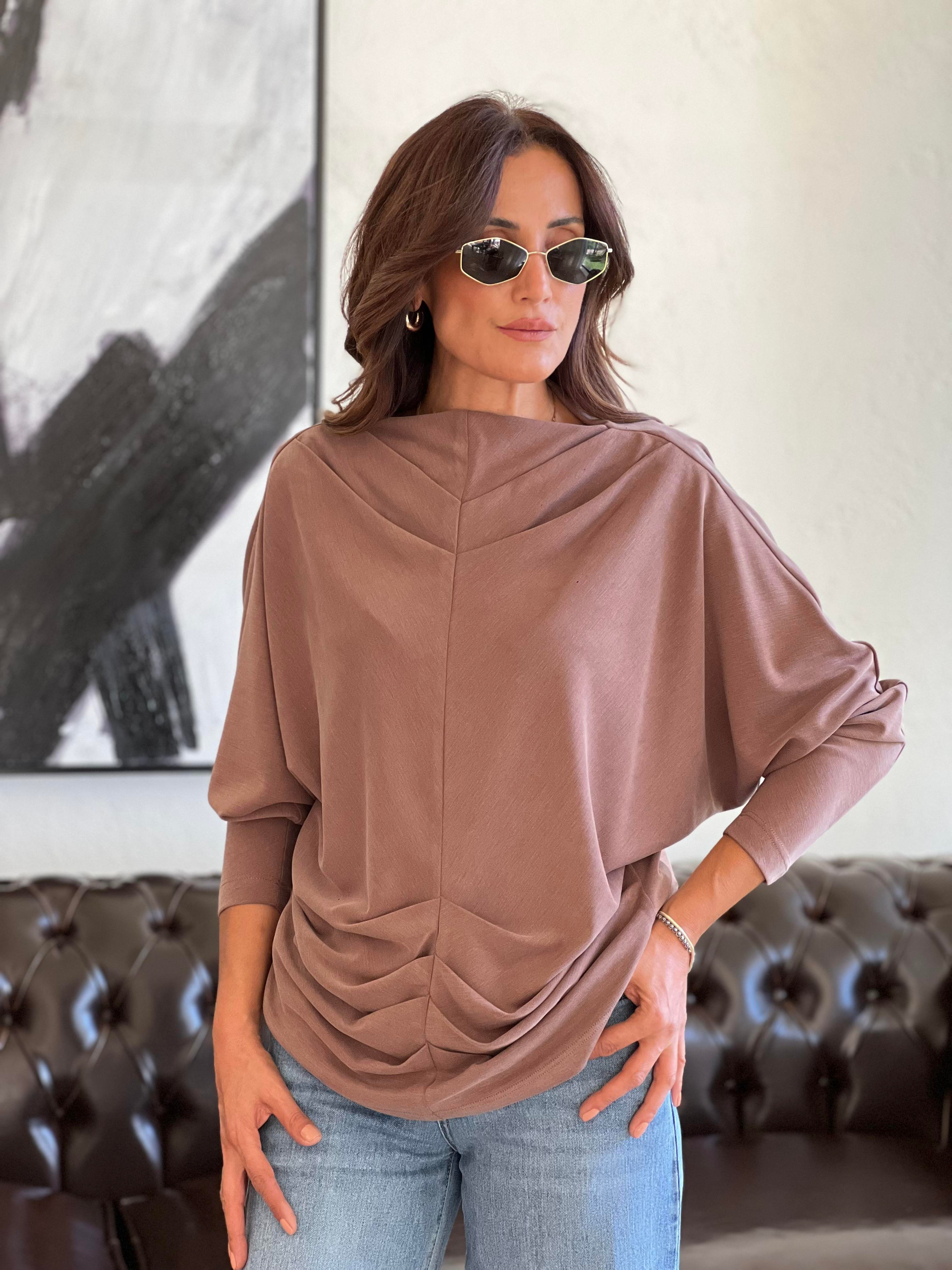 GENİŞ KESİM, YARASA KOL,BÜZGÜ DETAYLI ÖRME BLUZ