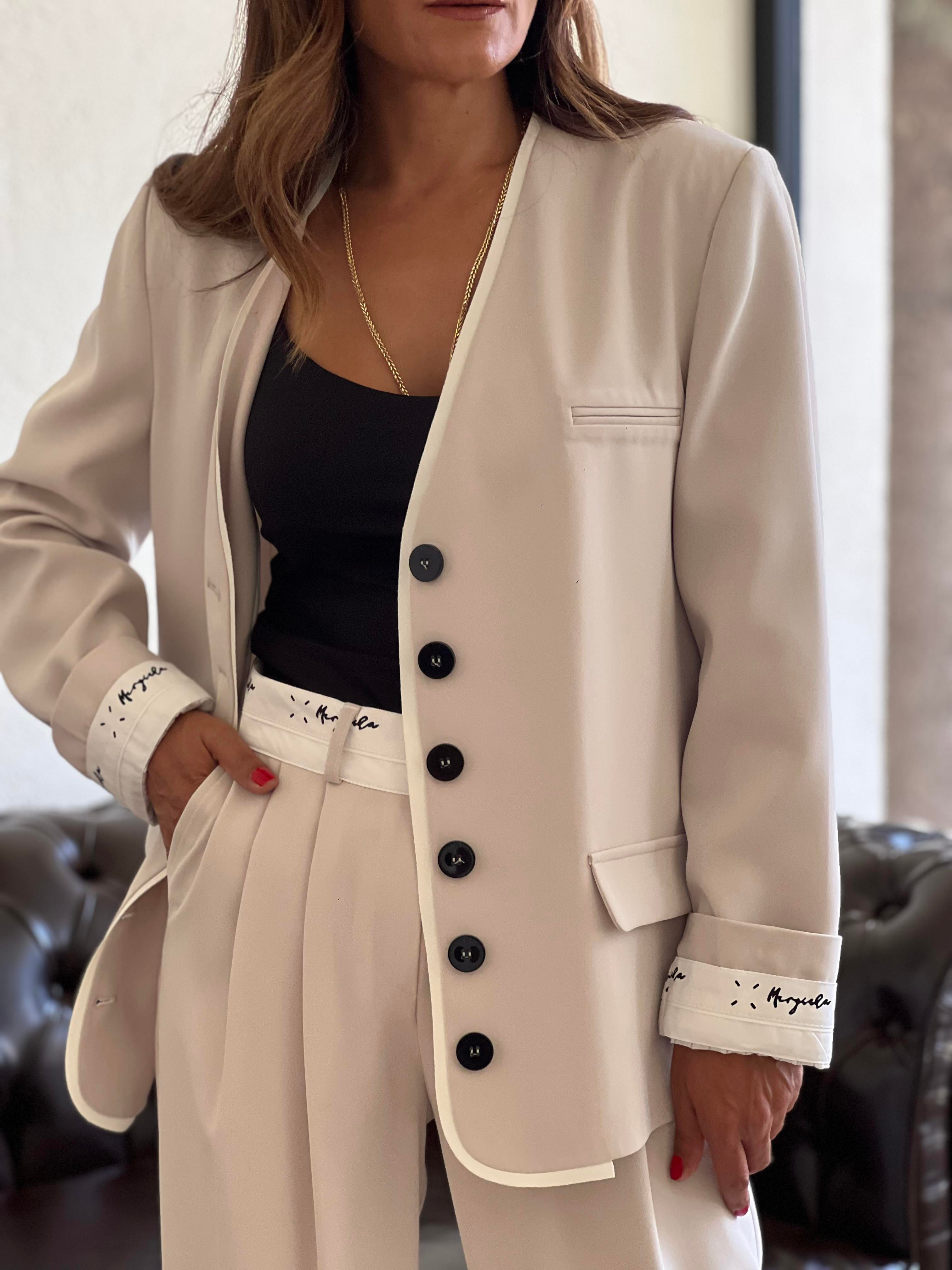 HAKİM YAKA BEYAZ ŞERİT ÇİZGİLİ CEKET