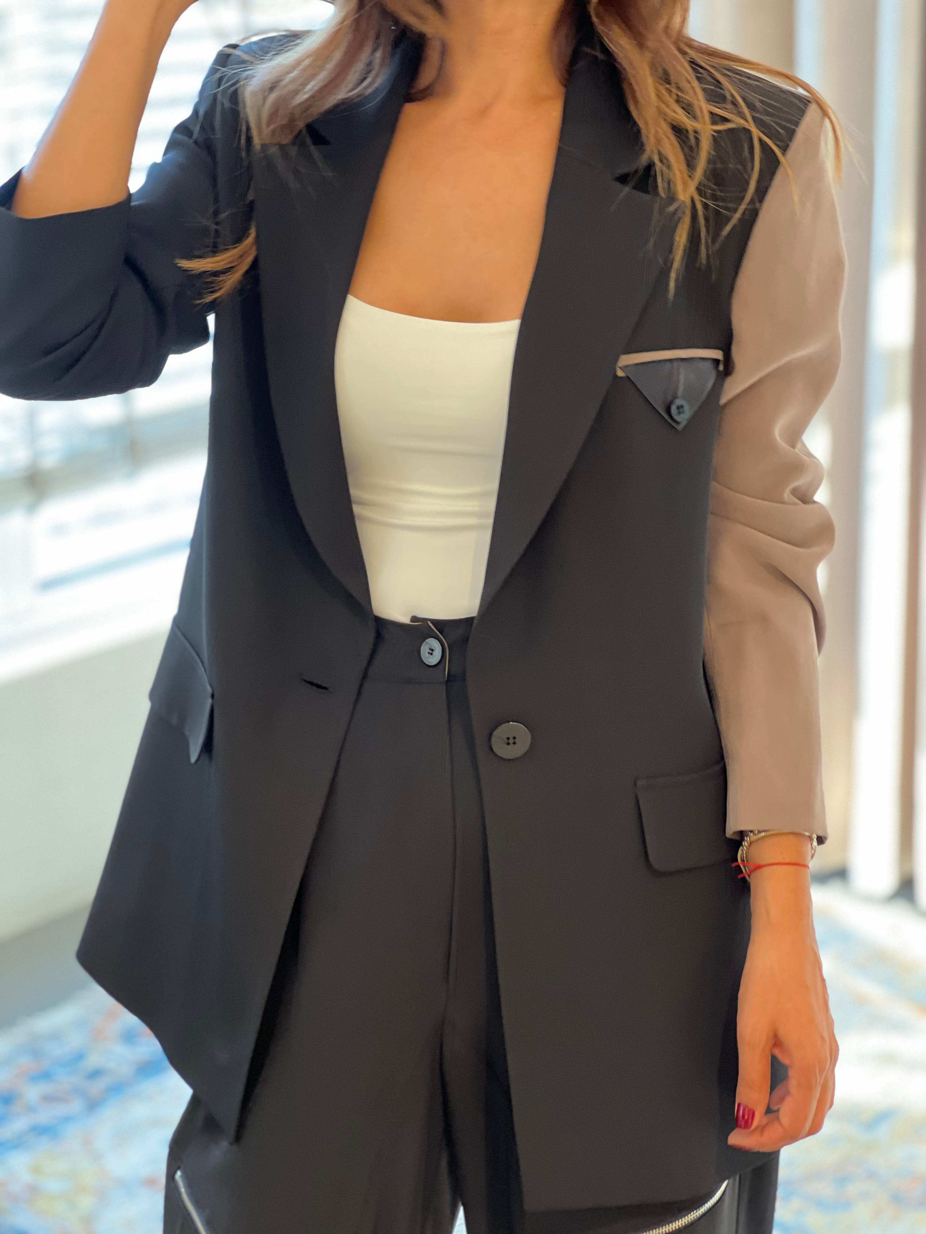 ÇİFT RENK RAHAT KESİM TENSEL KUMAŞ CEKET
