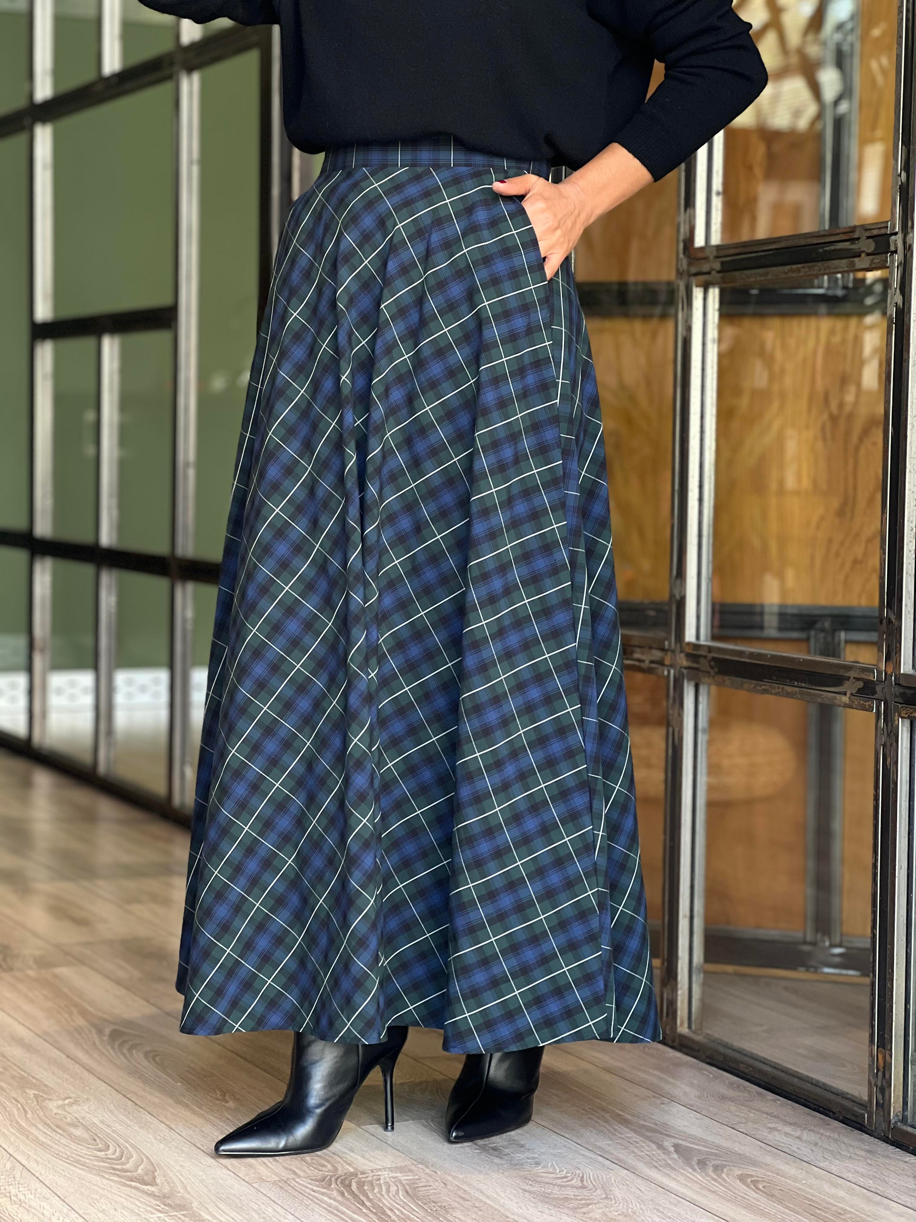 YEŞİL EKOSE DESENLİ CEPLİ ETEK