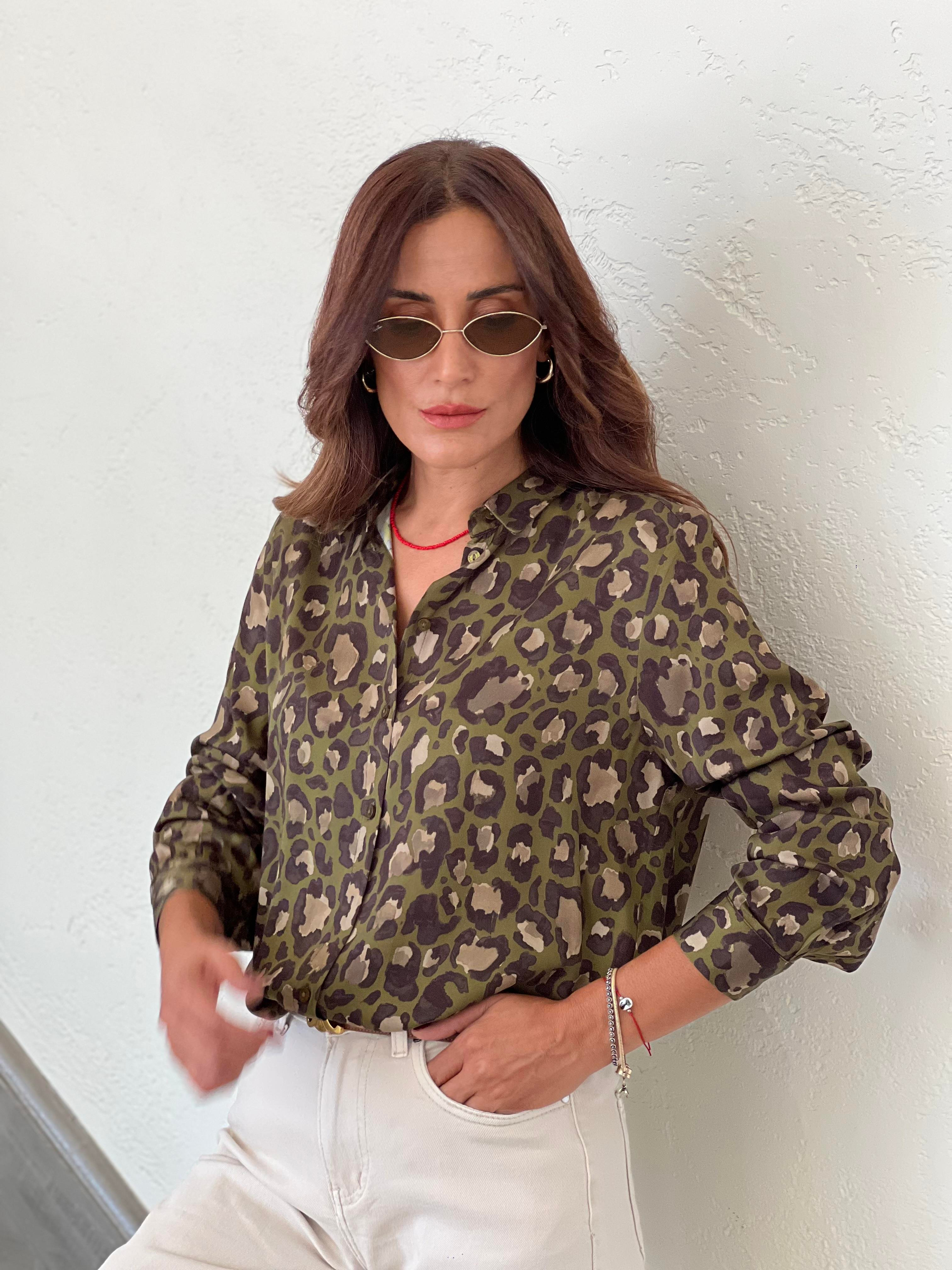 LEOPAR DESENLİ YEŞİL GÖMLEK