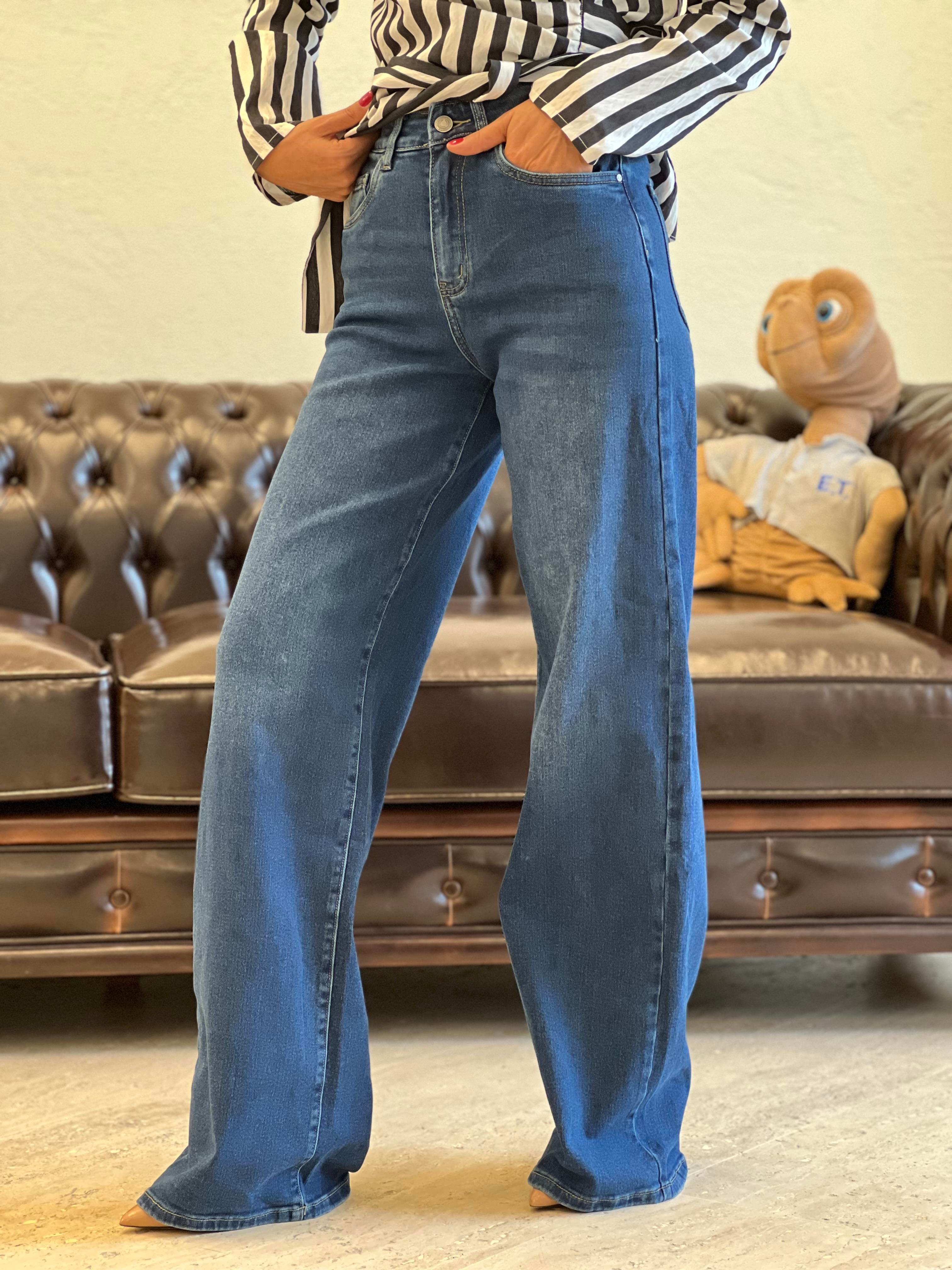 LİKRALI YÜKSEL BEL BOL PAÇA KOT PANTOLON