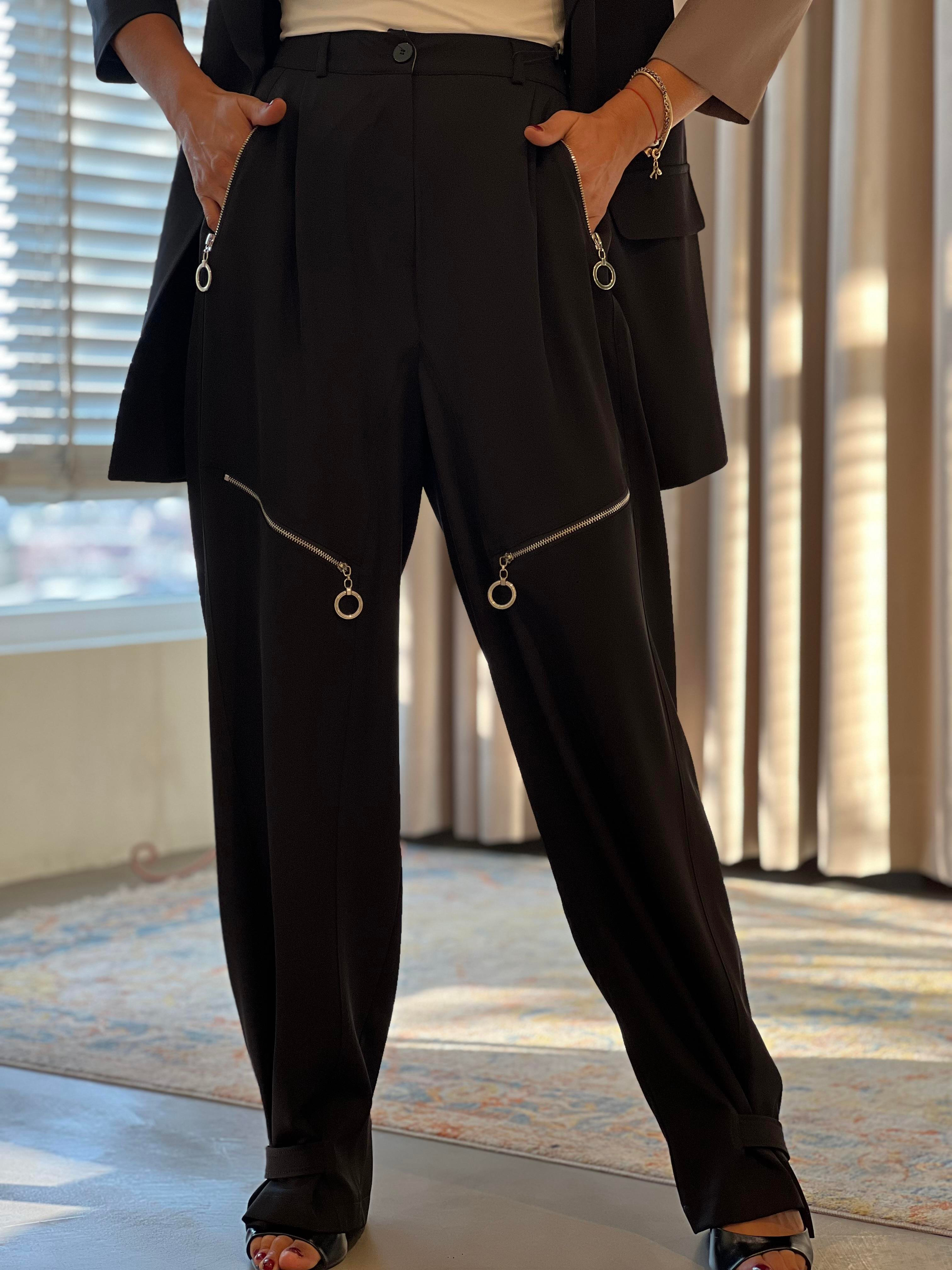 FERMUAR DETAYLI, DÖKÜMLÜ, HAVUÇ KESİM PANTOLON